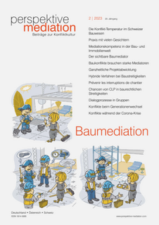 Die aktuelle Ausgabe der Perspektive Mediation widmet sich dem Thema Baumediation, ein Feld, in dem vergleichsweise viele erfolgreiche Mediationen durchgeführt werden. Das Inhaltsverzeichnis findet sich hier. Mitglieder des Mediationsforums haben freien Zugang zur Online-Ausgabe und dem gesamten Online-Archiv der Zeitschrift perspektive mediation (pm). Wer diesen noch nicht engerichtet hat, meldet sich direkt beim Verlag Österreich Kundenservice unter kundenservice@verlagoesterreich.at mit dem Code SDM/pm. Hier lässt sich auch ein vergünstigtes Print-Abo bestellen, es kostet 49 € pro Jahr (regulärer Preis 98) zzgl. Versandgebühren 22.73 Euro. Der Schwerpunkt wurde unter anderem gewählt, weil die FSM-Fachgruppe Baumediation in diesem Jahr ihr 10-jähriges Bestehen feiert. Eine von mehreren Jubiläumsveranstaltungen fand im Juni statt, im NEST der Empa in Dübendorf. Am 19. Oktober 2023 findet ein Herbstworkshop (ganztags) statt zum Thema «Stockwerkeigentum – Herausforderungen erfolgreich bewältigen – optimale Kommunikation, Schnittstellen- und Konfliktmanagement». Anmelden kann man sich hierfür auf www.baumediation-sdm.ch. |
